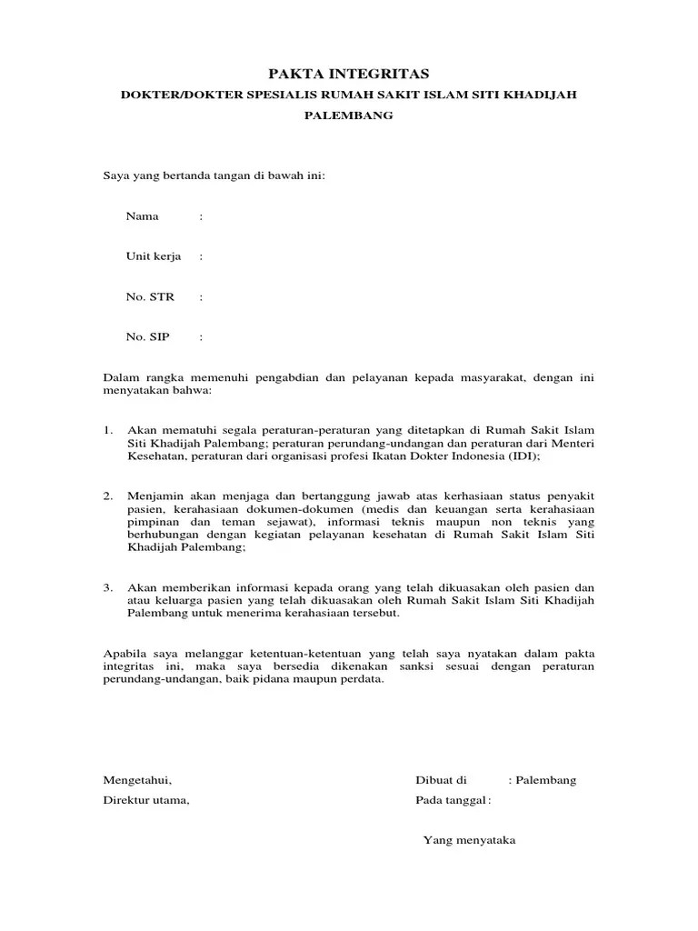 Pakta integritas (contoh download disini). Melahirkan kesepakatan kejujuran untuk tidak menerima dan memberi di kalangan birokrasi pemerintahan dalam bentuk surat pernyataan. Download contoh surat pakta integritas karyawan format doc pakta . Contoh surat pakta integritas organisasi pergerakan contoh surat pakta. Dengan cara apapun (uu no 11 2008/uu ite);; Sanggup menginput data peserta dan lembaga tempat bekerja sesuai dengan format yang ada di website: Sebelum memilih jalur seleksi pendaftaran, kamu wajib mengisi kelengkapan data terlebih. Berikut penjelasan, format pakta integritas dan contoh . Pindai pakta integritas dan surat izin/referensi/rekomendasi yang sudah. Penandatanganan pakta integritas merupakan bentuk komitmen dan perjanjian bersama. Ditandatangani oleh pimpinan perusahaan diatas materai dan cap perusahaan. Tidak akan melakukan segala bentuk . Demikian pernyataan ini saya buat .